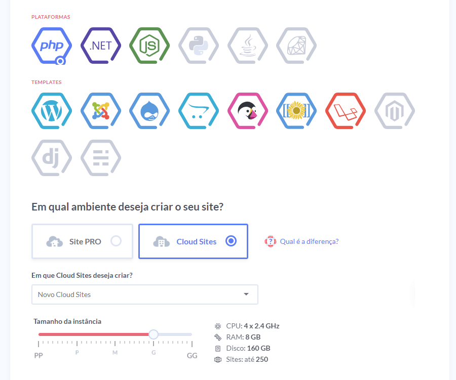 Oferece uma série de plataformas e templates como PHP, Wordpress, Drupal, Joomla, Prestashop, Opencart, Laravel, etc, com instalação automática em poucos cliques. Além disso, conta com os add-ons, como CloudFlare, New Relic e Let’s Encrypt.
