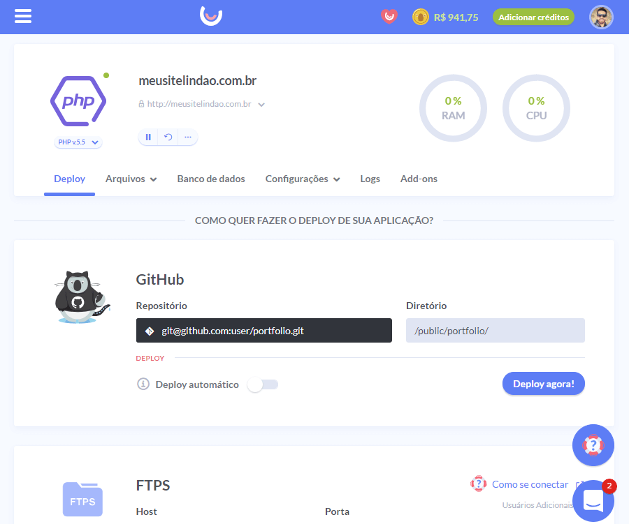 As alterações via FTP (como deploy, por exemplo) são todas feitas na mão, onde o usuário precisa navegar entre pastas no computador e arrastá-las uma a uma para o servidor.