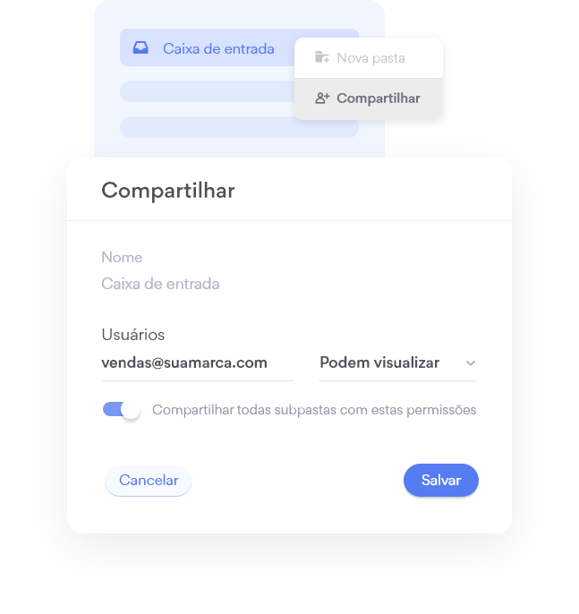 Compartilhe a caixa de entrada com outros times e colegas de trabalho, todos trabalhando juntos com transparência e colaboração.